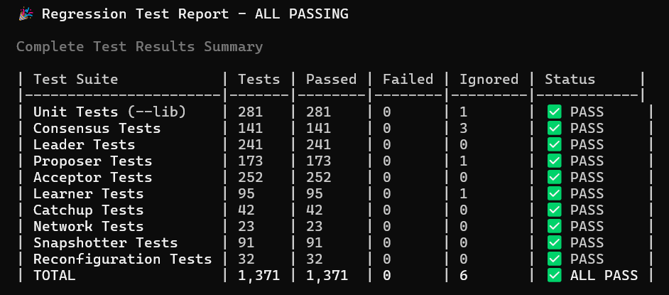 Testing is the first layer of defense. My system now includes 1,300+ tests — from unit tests to minimal integration tests (e.g., proposer + acceptor only), all the way to multi-replica full integration tests with injected failures. See the project status.